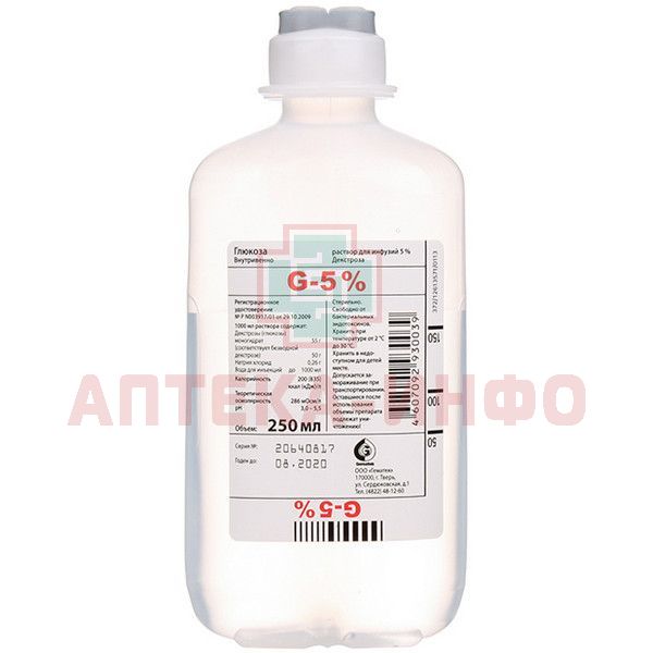 Глюкоза фл.(р-р д/инф.) 5% 250мл №10 Гематек
