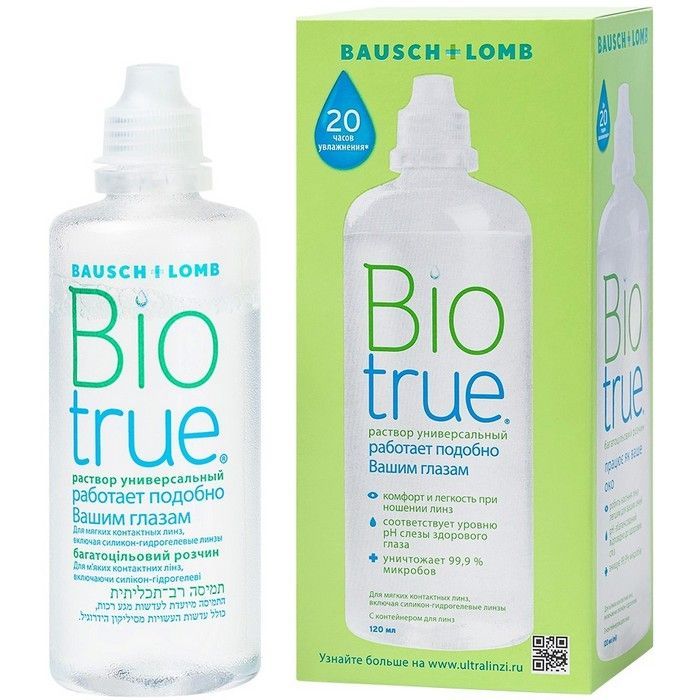 - линзах, промойте их Универсальным раствором Биотру (Biotrue) перед надеванием. Всегда следуйте инструкциям врача-офтальмолога. На основе индивидуальных особенностей Вашей слезы и режима ношения линз, врач-офтальмолог может рекомендовать дополнительные продукты и процедуры.