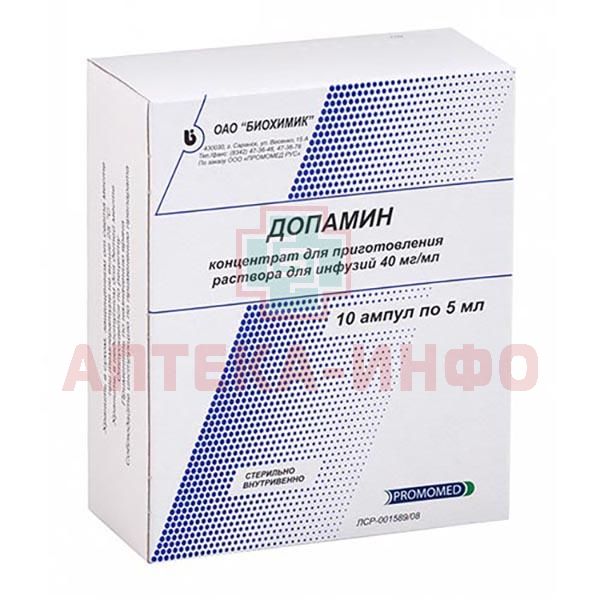 Допамин амп.(конц. д/приг. р-ра д/инф.) 5мг/мл 5мл №10 (5х2) Биохимик