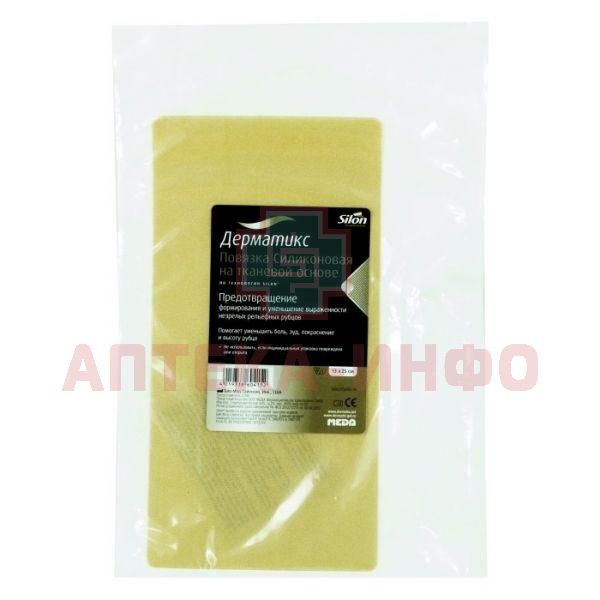 Повязка ДЕРМАТИКС силиконовая 13 х 25см (тканевая основа) Био Мед Сайенсиз/США
