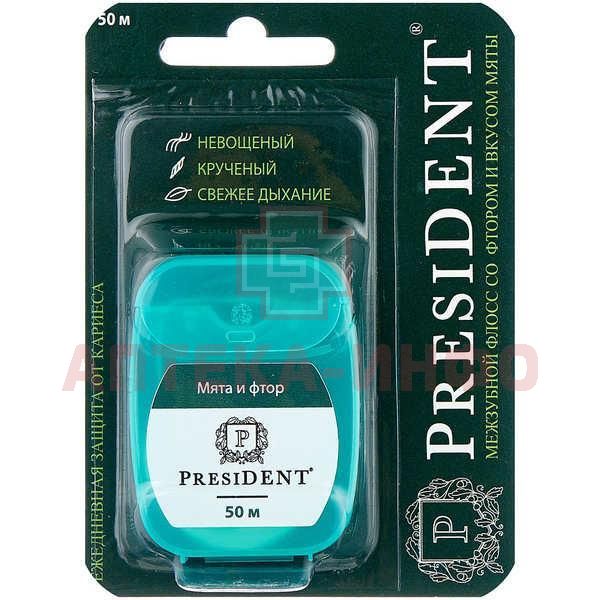 Зубная нить ПРЕЗИДЕНТ флосс Мятный с фтором 50м (арт. 102) Dental Cleaning S.r.l./Италия