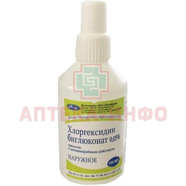 Хлоргексидина биглюконат (дез.) фл.(р-р наружн.) 0,05% 100мл №1 (Петрофарм)