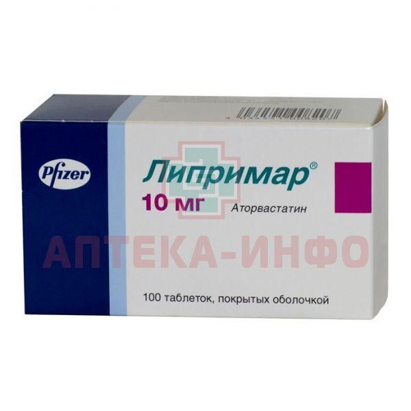 Липримар таб. п/пл. об. 10мг №100 Pfizer Pharmaceuticals LLC/Пуэрто-Рико/Pfizer Manufacturing Deutschland/Германия