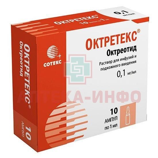 Октретекс амп.(р-р д/инф. и п/к. введ.) 0,1мг/мл 1мл №10 Сотекс