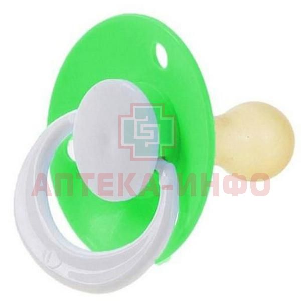 Соска-пустышка имеет шайбу-нагубник круглой выпуклой формы. Соска-пустышка дневная, выпускается с кольцом. Она из латекса