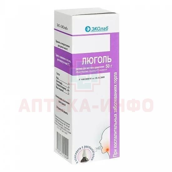 Люголя раствор с глицерином фл.(р-р д/мест. прим.) 50мл №1 (распылитель и дозатор) Эколаб