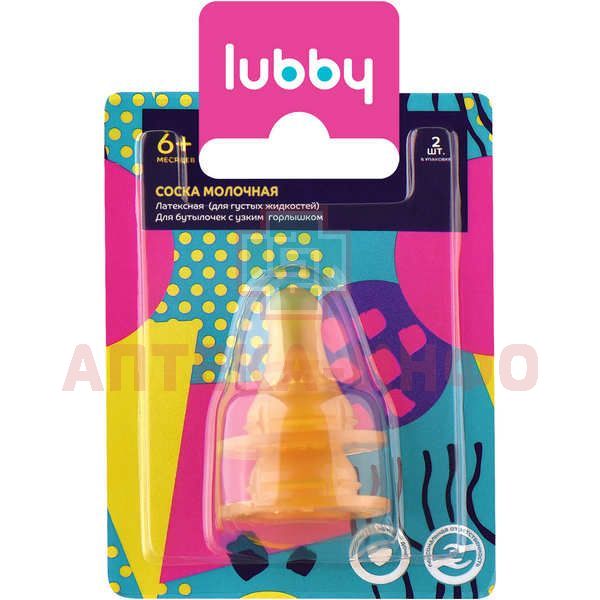 "Соска «LUBBY» предназначена для использования в комплекте с бутылочками различных форм при кормлении малыша. На каждой упаковке указаны размеры соски, которые помогут выбрать изделие в соответствии с возрастом Вашего младенца: S – для детей до 3-х месяцев, M – для детей от 3-х до 6 месяцев, L – для детей старше 6 месяцев, Х - для густой пищи. Помните, что ссылки на возраст приблизительны, так как сроки развития малышей различны. Соска изготовлена из прочного, высококачественного латекса. "
