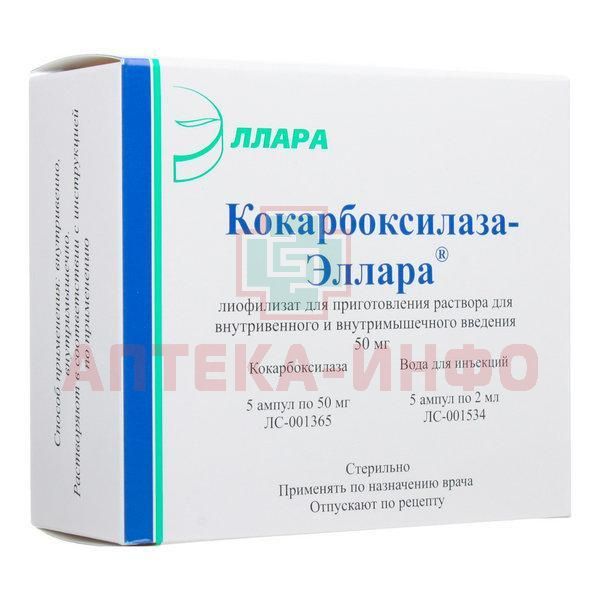 Кокарбоксилаза-Эллара амп.(лиоф. д/приг. р-ра д/в/в и в/м введ.) 50мг №5 + р-ль Эллара