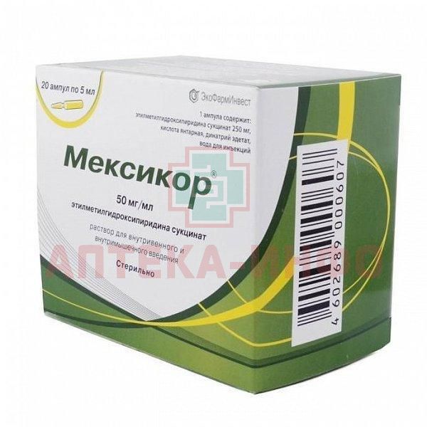 Механизм действия Мексикора обусловлен антигипоксантным, антиоксидантным и мембранопротекторным действием этилметилгидроксипиридина сукцината и янтарной кислоты, входящих в его состав.