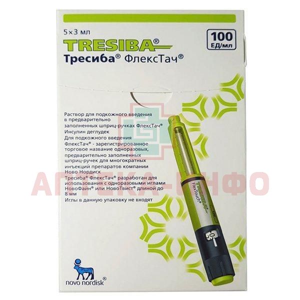 - Соблюдайте местные требования к утилизации использованных медицинских материалов. Препарат Тресиба® в предварительно заполненной шприц-ручке ФлексТач® поставляется в двух дозировках. На этикетке шприц-ручки и картонной пачке чётко обозначено