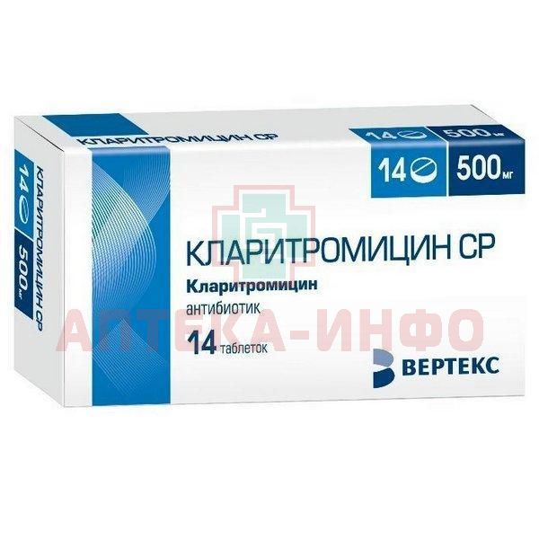 Кларитромицин СР таб. пролонг. п/пл. об. 500мг №14 Вертекс