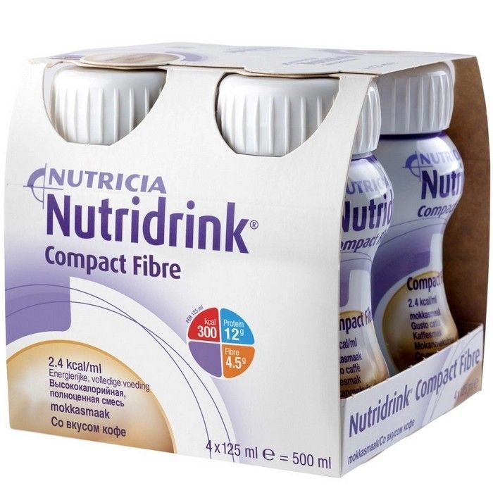 - НУТРИДРИНК КОМПАКТ FIBRE С ПИЩЕВЫМИ ВОЛОКНАМИ СО ВКУСОМ КОФЕ - жидкая, готовая к употреблению, высокобелковая, высококалорийная смесь с пищевыми волокнами и высоким содержанием Омега-3 полиненасыщенных жирных кислот.