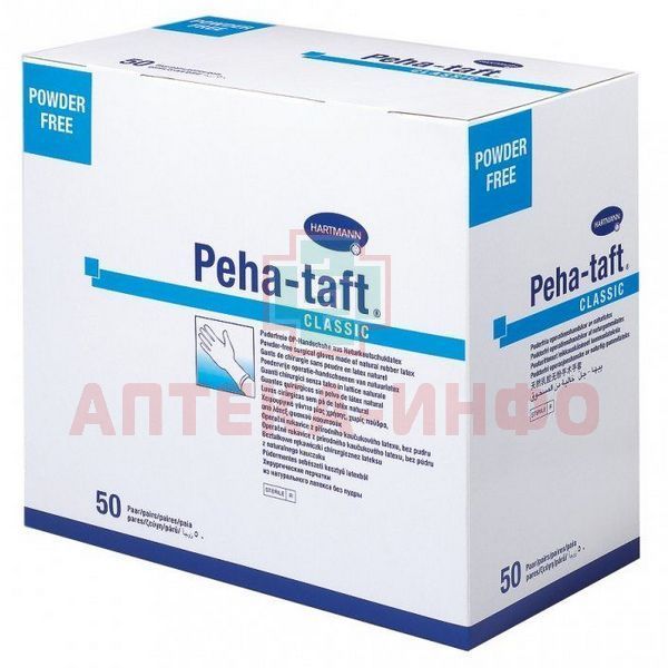 Хирургические перчатки Peha-taft CLASSIC высокой прочности изготавливаются из тонкого и мягкого латекса наивысшего качества и упаковываются попарно.