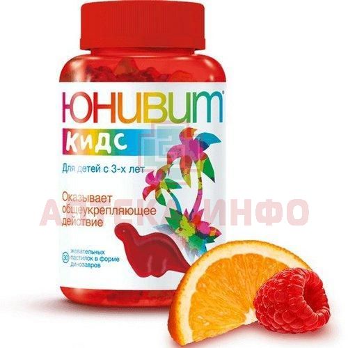 Фармакологические свойства:Активность Юнивит® Кидс для детей определяется свойствами входящих в ее состав компонентов.Обеспеченность входящими в состав витаминами необходима для нормальной функции кожи, слизистых оболочек, органа зрения, процессов белкового, жирового и углеводного обменов, кроветворения, для нормального роста и развития, функционирования нервной системы и умственного развития, адекватного иммунного ответа.