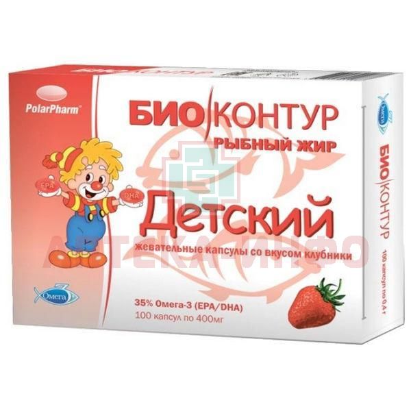 Рыбный жир "Биоконтур" детский (клубника) капс. жев. 400мг №100 Полярис/Россия