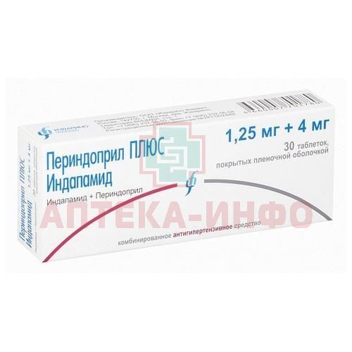 Периндоприл Плюс Индапамид таб. п/пл. об. 1,25мг+4мг №30 Изварино Фарма