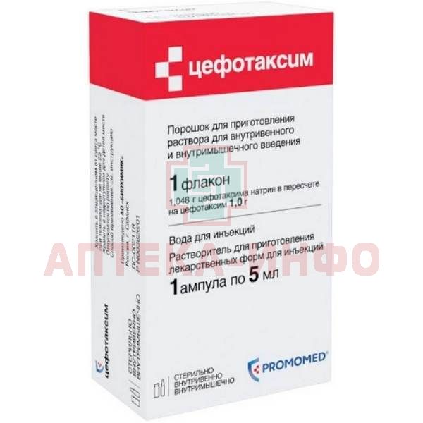 - активное вещество: цефотаксим натрия (в пересчете на активное вещество) - 1,0 г