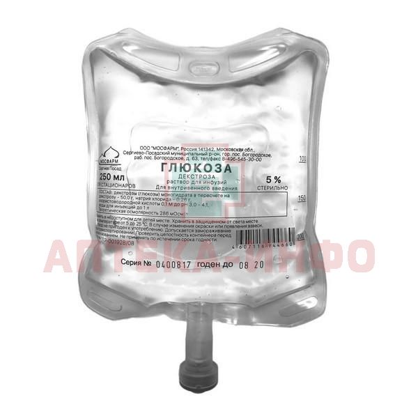 Глюкоза конт.(р-р д/инф.) 5% 250мл №1 (меш. п/эт.) Мосфарм