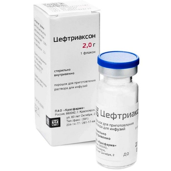 - Цефтриаксон натрия гемигептагидрат 2,386 г в пересчете на цефтриаксон 2,0 г.