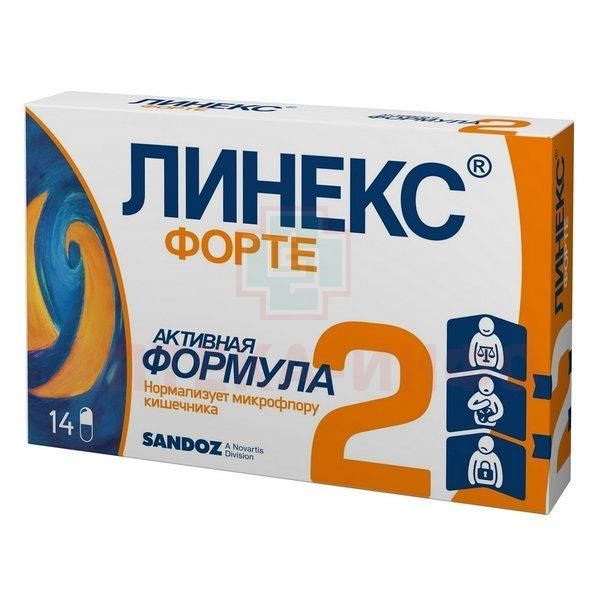 Одна капсула препарата Линекс Форте содержит молочнокислые бактерии (Lactobacillus acidophilus (LA-5) и Bifidobacterium animalis subsp. lactis (BB-12)), каждая капсула содержит 109 колониеобразующих единиц живых лиофилизированных молочнокислых бактерий. Живые молочнокислые бактерии являются нормальной составляющей естественной микрофлоры кишечника.