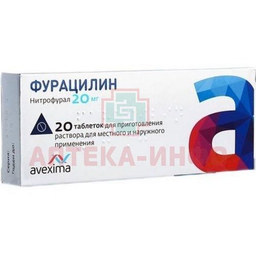 Активное вещество: нитрофурал (фурацилин) 20 мг