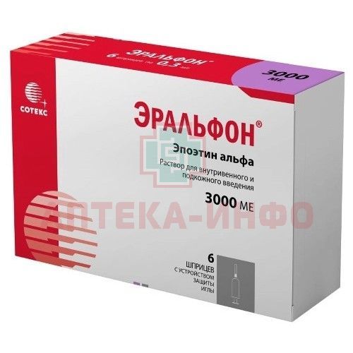 Эральфон шприц (р-р д/в/в и подк. введ.) 3000МЕ 0,3мл №6 Сотекс