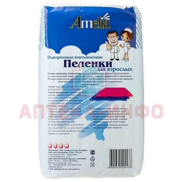 Пеленка АМЕЛИЯ взрослые 60х60см №1 Гигровата