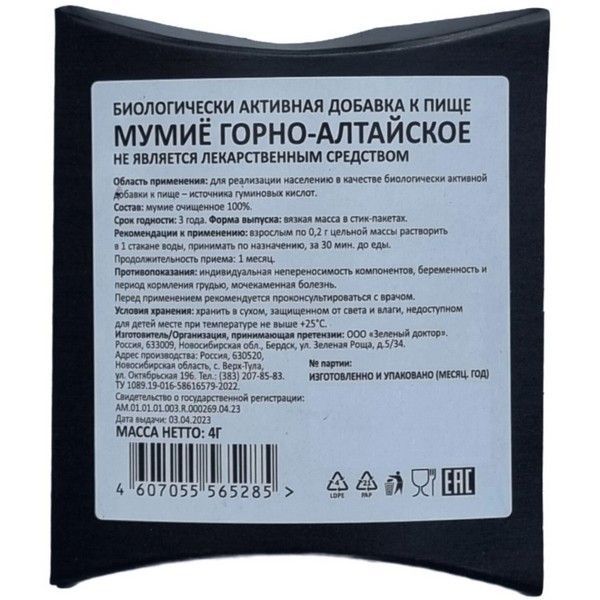 Мумие "Горно-алтайское" пак. 4г Зеленый доктор/Россия