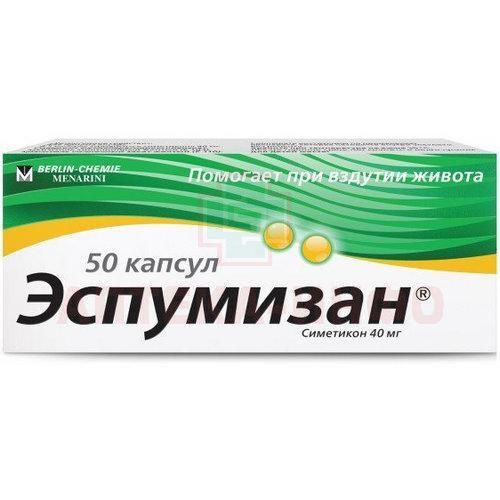 Эспумизан капс. 40мг №50 Catalent Germany Eberbach/Германия/Berlin-Chemie/Германия