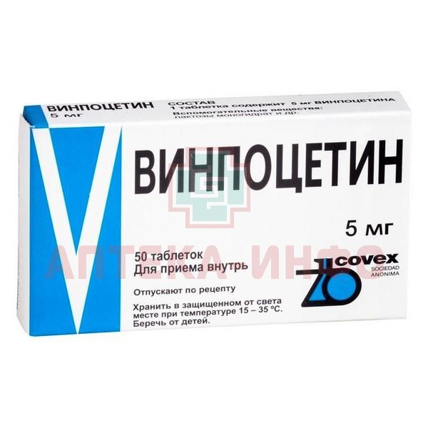 Выведение: при многократном введении в дозе 5 и 10 мг винпоцетин проявляет линейную фармакокинетику, равновесная плазменная концентрация составляет 1,2±0,27 и 2,1 ±0,33 нг/мл соответственно. Период полувыведения у человека составляет 4,83±1,29 ч. В исследованиях с радиоактивно меченым винпоцетином установлено, что выведение почками и кишечником происходит в соотношении 60:40 %.