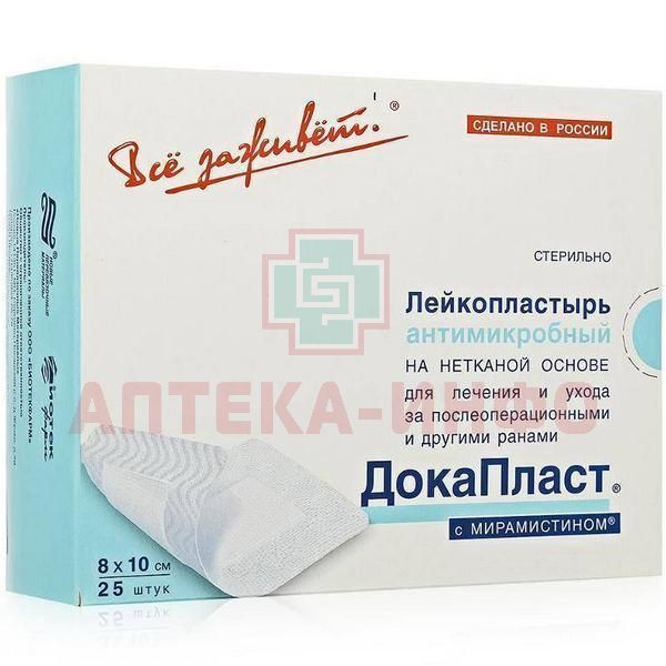 Лейкопластырь ДОКАПЛАСТ с мирамистином антимикробный 8x10см №25 Новые перевязочные материалы/Россия