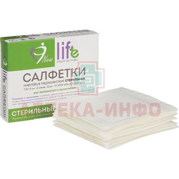 Салфетки LIFE стер. 7,5см х 7,5см №10 (12 сложений) в инд. упак. Навтекс