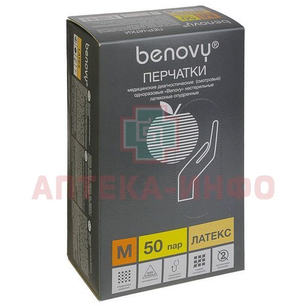 Перчатки смотровые н/стер. разм. M (латекс. неопудр. диагн. BENOVY) №100 (50пар) ТГ Медикал Сдн.Бдх/Малайзия