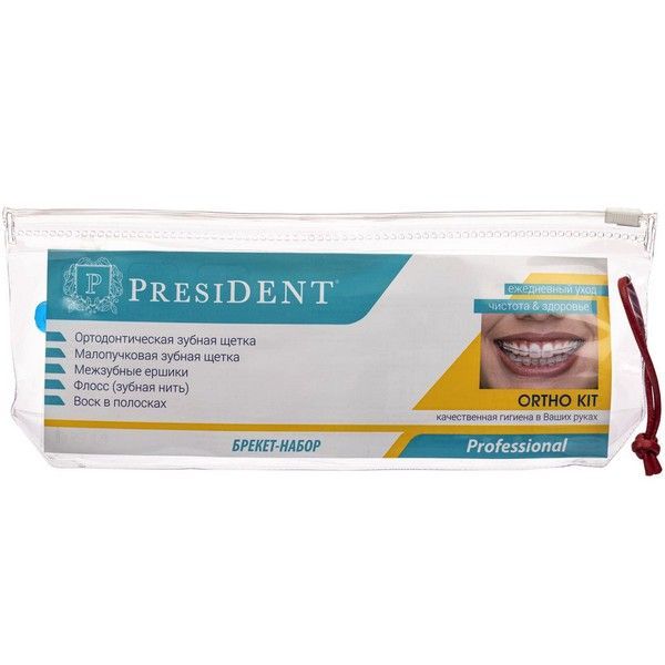 Набор ПРЕЗИДЕНТ Брекет (зубная щетка ортодон., зуб. щетка малопучков. ершики, флосс, зуб. паста) Betapharma/Италия