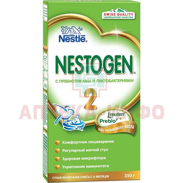 Смесь Nestogen 2 была специально разработана для обеспечения сбалансированного здорового питания и комфортного пищеварения малыша. Смесь Nestogen 2 с пребиотиками Prebio и уникальными лактобактериями L.reuteri способствует улучшению моторики кишечника, формированию регулярного мягкого стула и становлению здоровой микрофлоры. Смесь Nestogen 2 молочная смесь, предназначенная для вскармливания детей с 6 месяцев в качестве молочной составляющей рациона ребенка наряду с продуктами прикорма. Она содержитсбалансированный комплекс витаминов и минеральных веществ для гармоничного роста и развития. ВАЖНОЕ ПРИМЕЧАНИЕ Идеальной пищей для грудного ребенка является молоко матери. Перед тем как принять решение об искусственном вскармливании с использованием детской смеси, обратитесь за советом к медицинскому работнику. Возрастные ограничения указаны на упаковке товаров в соответствии с законодательством РФ. Смесь Nestogen 2 предназначена для кормления здоровых детей с 6 месяцев и является молочной составляющей рациона ребенка в случаях, когда грудное вскармливание невозможно. Смесь Nestogen 2 не может быть использована в качестве заменителя грудного молока в первые 6 месяцев жизни ребенка. Продукт изготовлен из сырья, произведенного специально одобренными поставщиками, без использования генетически модифицированных ингредиентов, консервантов, красителей и ароматизаторов. Примечание: Для сохранения живых бактерий вскипяченную воду следует остудить примерно до температуры тела (37 ?С) и затем добавить сухую смесь. Для приготовления смеси необходимо использовать мерную ложку, заполненную без горки. Разведение неправильного количества порошка большего или меньшего по сравнению с количеством, указанным в таблице может привести к обезвоживанию организма ребенка или нарушению его питания. Указанные пропорции нельзя изменять без совета медицинского работника. В этом возрасте питание ребенка становится более разнообразным (постепенно вводятся каши, овощи, фрукты, мясо и рыба). Проконсультируйтесь с медицинским работником, прежде чем вводить прикорм в меню ребенка. Если раннее введение продуктов прикорма рекомендовано вашим доктором, то уменьшите количество потребления детской смеси согласно рекомендации.