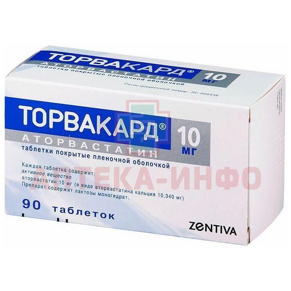 Торвакард таб. п/пл. об. 10мг №90 Saneca Pharmaceuticals/Словакия