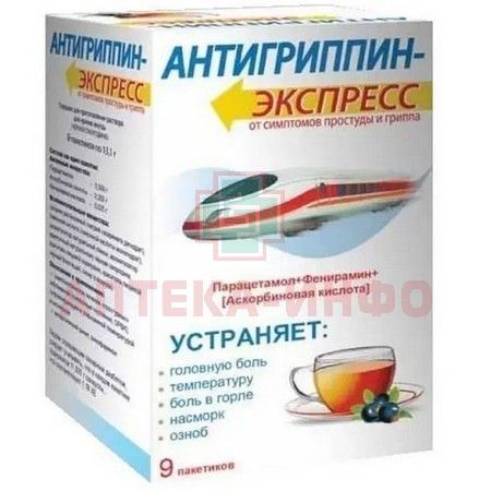 Антигриппин-Экспресс пак.(пор. д/приг. р-ра д/приема внутрь) №9 (черная смородина) Фармацевтическая фабрика Санкт-Петербурга