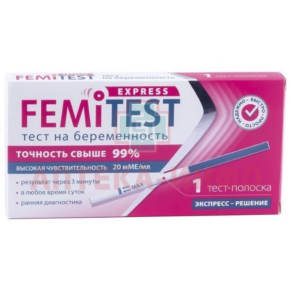 Тест на беременность ФЕМИТЕСТ (Femitest) Суперчувствительный 20мМЕ/мл №1 (тест-полоска) PharmLine/Великобритания