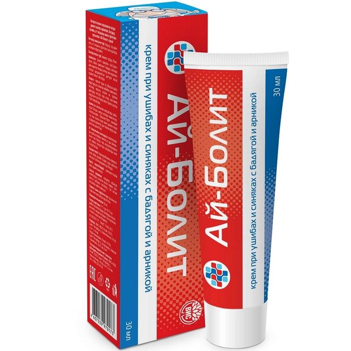 - АЙ-БОЛИТ крем - это косметическое средство с кремовой текстурой с арникой, бадягой, конским каштаном и прополисом для ухода за кожей при ушибах и синяках.
