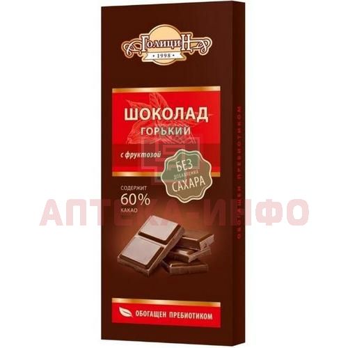 Шоколад ГОЛИЦИН горький с орехами на фруктозе 60% какао 60г Вишневогорская КФ