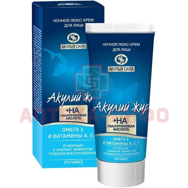 Крем АКУЛИЙ ЖИР "Акулья сила" Омега 3 и Витамины A, E, F люкс п/морщин с лифтингом д/лица ночной 50мл Твинс Тэк/Россия