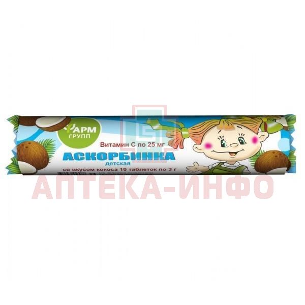 Аскорбинка детская таб. 3г (витамин С 25мг) №10 (кокос) Фармгрупп