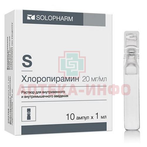 Хлоропирамин является блокатором H1-гистаминовых рецепторов. По химическому строению относится к производным этилендиамина. Хлоропирамин селективно блокирует H1-гистаминовые рецепторы и уменьшает проницаемость капилляров. Предупреждает развитие и облегчает течение аллергических реакций. Оказывает седативное, антигистаминное, м-холиноблокирующее и выраженное противозудное действие. Обладает умеренной спазмолитической активностью и противорвотным действием.