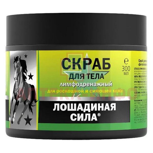 Скраб ЛОШАДИНАЯ СИЛА д/тела лимфодренажный д/роскошной и сияющей кожи 300мл Дина+