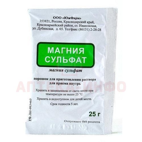 Магния сульфат пак.(пор. д/приг. р-ра д/приема внутрь) 25г №10 Южфарм