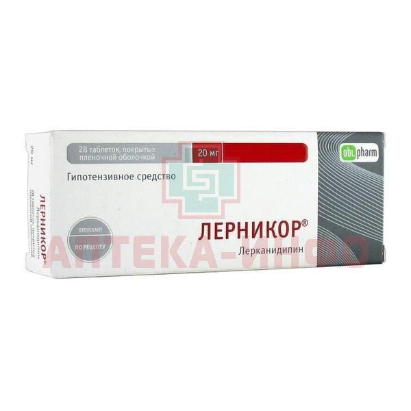 действующее вещество: лерканидипина гидрохлорид 10 мг/ 20 мг;