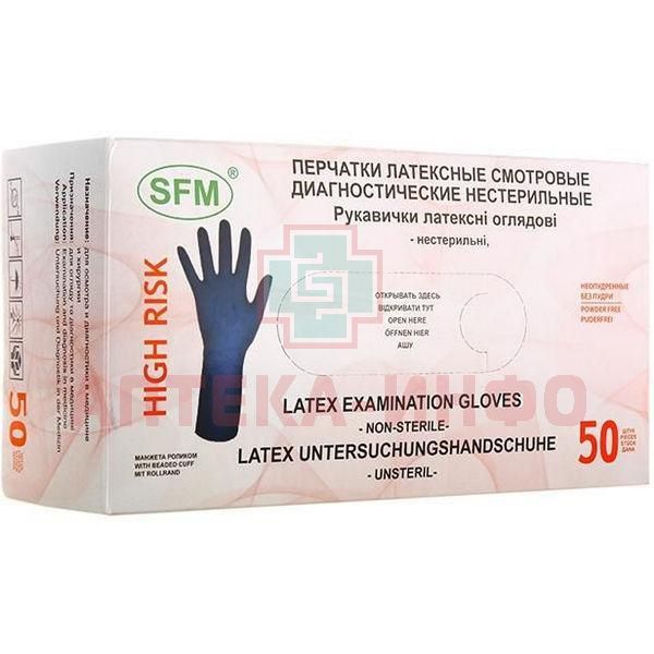 Перчатки смотровые н/стер. разм. M (латекс. св/прочные неопуд. текст. HIGH RISK) №50 SFM Hospital Products/Германия