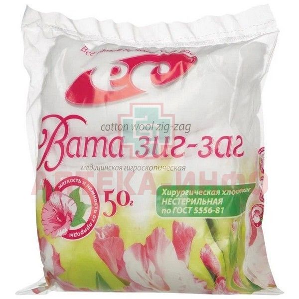 Вата хирург. н/стер. 50г (зиг-заг) Русвата