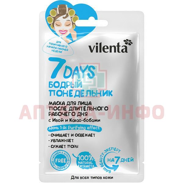 Маска косметическая Vilenta 7 DAYS Бодрый понедельник после длительного рабочего дня Ива и Какао Бобы 28мл Nox Bellcow Cosmetics/Китай