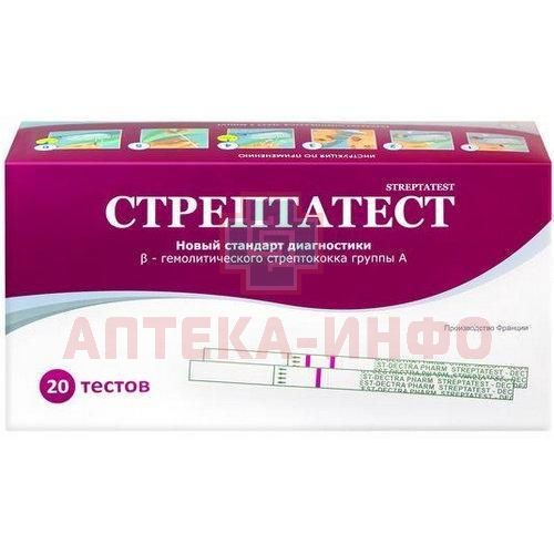 Тест диагностический СТРЕПТАТЕСТ Экспресс д/диагностики стрептококка группы А №20 Dectra Pharm/Франция